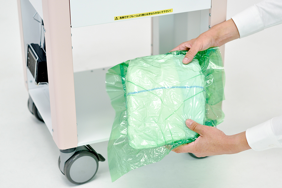 Carefort is a system for packing used diapers. Carefort is a completely new system developed based on the concept of containing the sources of odors rather than deodorization that eliminates odors as in deodorizers and ozone generators. It also contains bacteria and viruses emanating from used diapers, reducing the risk of secondary infection.