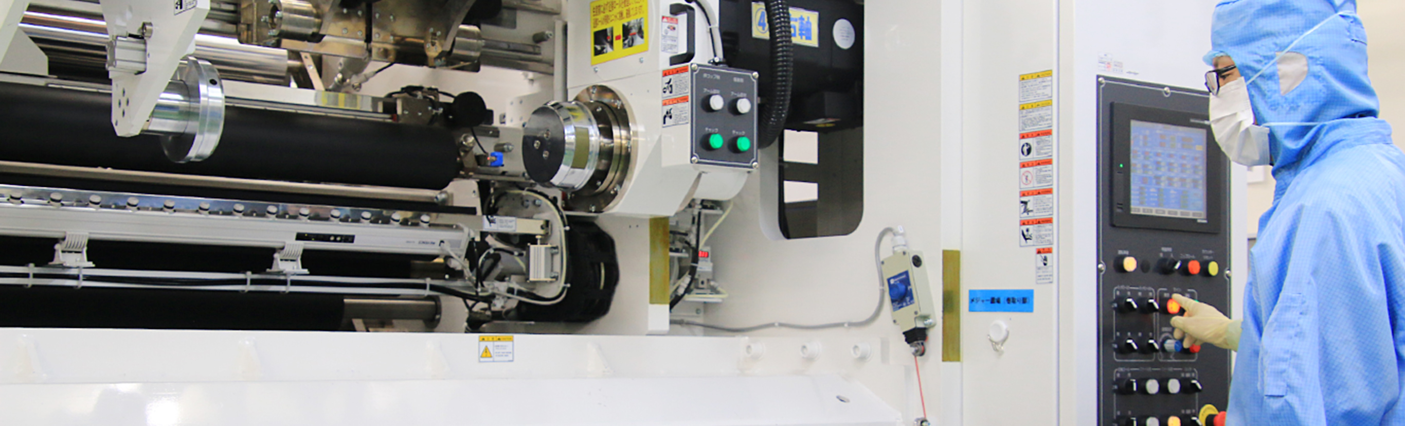 - It is possible to form a tape by coating an adhesive on various materials, Because it corresponds to film width up to 500 mm, it can lead to small quantity production from test coating. Because of the compact coater, it also supports test coating at several meters and several tens of meters.